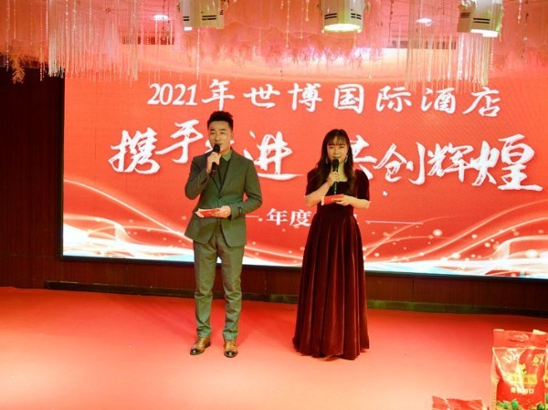 潢川网讯 2月8日晚,潢川世博国际酒店2021年度“携手并进共创辉煌”表彰暨迎新年会在酒店八楼宴会厅隆重举行,酒店全体员工以及世博国际酒店VIP客户、蜜秀文化传媒部分员工等200余人,欢聚一堂,共同回顾