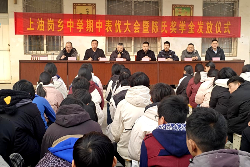 本网讯(王建堡)2025年12月11日下午,潢川县上油岗乡九年一贯制学校(初中部)召开2025学年上学期期中表彰大会暨“陈氏奖学金”发放仪式。大会由乡九年一贯制学校副书记、副校长、初中部校长舒勇主持,全体师生共同参与,警校共建联系人袁森也应邀为学生开展法治安全教育。