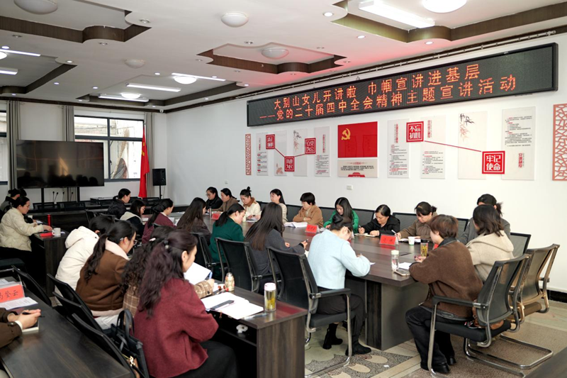本网讯 为深入学习宣传贯彻党的二十届四中全会精神,12月11日,潢川县妇联在县委一楼会议室举办“大别山女儿开讲啦·巾帼宣讲进基层”党的二十届四中全会精神专题宣讲会。县妇联党组书记、主席胡煜昊作专题宣讲,县妇联十四届执委参加会议。