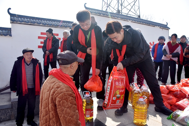 本网讯 金蛇辞旧岁,骏马迎新春。正值潢川县“两会”隆重召开、2026年新春佳节即将来临之际,2月11日上午,从奶庙村走出的创业成功人士——潢川京喜宴会酒店负责人刘浩、信阳兴叶园林绿化有限公司总经理刘俊伟,带着对故土的深情厚谊返乡,开展新春爱心慰问活动,为家乡老党员、老村组干部,五保户和困难群众送上米、面、油、肉等生活物资,致以诚挚问候与美好祝福,以实际行动践行乡贤担当、传递民生温度。