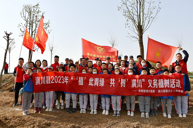 潢川网讯 又是一年春来到,正是植树好时节。3月12日,共青团潢川县委联合隆古乡人民政府在隆古乡高稻场村义务植树基地开展了潢川县2023年“‘植’此青绿 共‘树’潢川”义务植树活动,团县委工作人员、青年志愿者、少先队员代表等共50余人参加本次义务植树活动,以实际行动为建设“美丽潢川”增绿添彩。