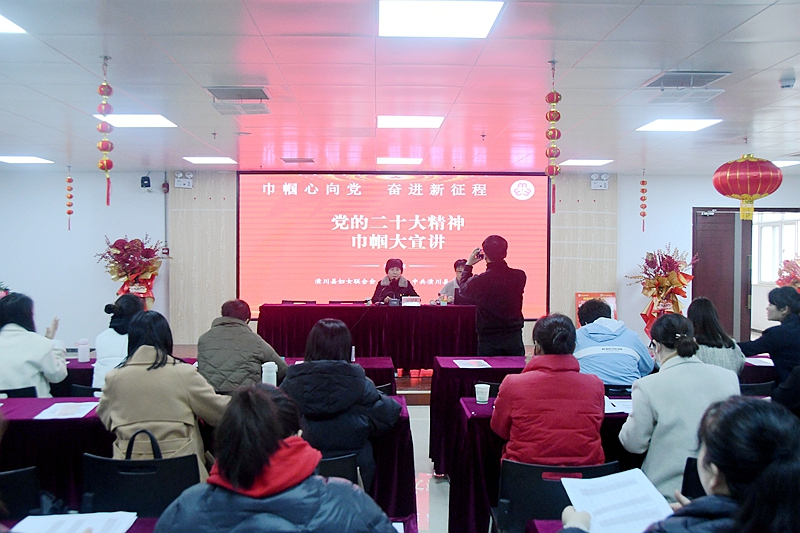 潢川网讯 为深入学习宣传贯彻党的二十大精神,进一步推动党的二十大精神往深里走、往实里走、往妇女心里走,引领广大妇女深刻认识党的二十大的重大意义,把思想和行动统一到党的二十大精神上来,3月20日,潢川县妇联联合中共潢川县委党校在中国人寿保险公司潢川分公司召开了“巾帼心向党 奋进新征程”党的二十大精神宣讲会。县妇联兼职副主席、执委,各乡镇(场、办、区)妇联主席、专职副主席参加会议,会议由县妇联党组书记