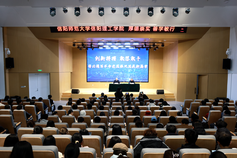 本网讯11月19日,市委常委,豫东南高新区党工委副书记、管委会副主任,潢川县委书记赵军伟来到信阳师范大学信阳理工学院,以《创新拼搏敢想敢干奋力谱写革命老区振兴发展新篇章》为题,宣讲党的二十届三中全会精