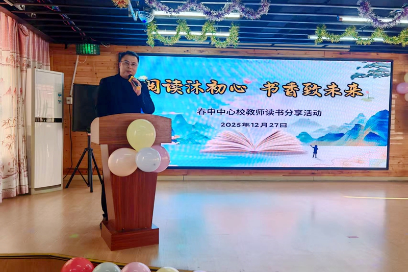 本网讯(潘丽 代清荣)为深入推进全民阅读,强化教师专业素养提升,营造书香浸润的教育生态,12月27日下午,潢川县春申中心校“阅读沐初心,书香致未来”教师读书分享会在金太阳幼儿园益民居园区举行。县教体局党组成员袁清术,县幼教中心负责人郭磊,县教体局普教股体卫艺副股长邵萌萌莅临指导,与中心校全体人员、辖区各学校教师代表齐聚一堂,共赴书香之约,共话教育初心。