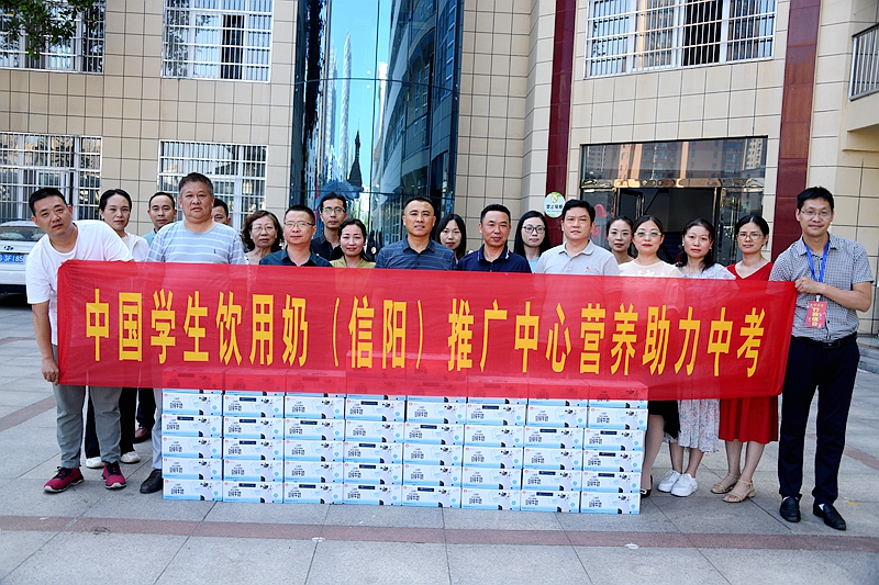 潢川网讯 6月20日下午,中国学生饮用奶(信阳)推广中心来到潢川县春申中学,向该校九年级学生捐赠学生饮用奶,为参加中招考试的孩子们补充营养,促进他们健康成长。