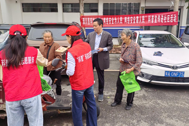 本网讯 “大家看,只要点击这个看似正规的‘社保认证’链接,手机里的银行卡信息就可能被偷走!”9月28日上午,潢川县机场社区活动现场,“i科普”科技志愿者手持手机演示诈骗套路,围观众人发出阵阵惊叹。当天,潢川县科协以“网络安全为人民 网络安全靠人民”为主题,将“沉浸式”科普宣传搬进社区,通过互动体验让居民和商户“零距离”学安全、防风险。