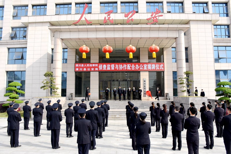 潢川网讯 为认真贯彻落实中央司法体制改革部署,不断提高侦查监督与检警协作配合质效。3月30日上午,潢川县人民检察院、潢川县公安局举行侦查监督与协作配合办公室揭牌仪式。县政府副县长、公安局长陈勇、县人民检察院党组书记、检察长曾春丽出席仪式。仪式由潢川县人民检察院副检察长项钰主持。县公安局与检察院相关部门负责人及干警代表参加了仪式。