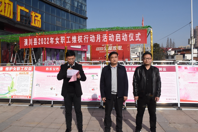 潢川网讯(宋士雄)为迎接第112个“三八”国际妇女节到来,助力女职工合法权益和特殊利益得到有效维护,3月4日上午,潢川县2022年“女职工维权行动月”活动启动仪式在清水湾天福顺超市广场举办。县人大常委会副主任、县总工会主席齐新峰出席启动仪式并讲话。县司法局、教体局、人社局、水利局、人民医院、城管局、财政局、卫健委等单位相关负责人应邀参加。