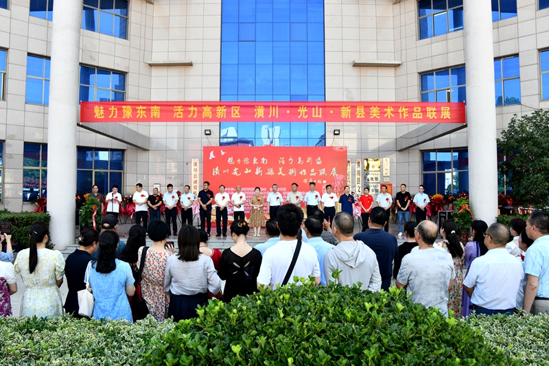 本网讯 为庆祝中国共产党成立103周年,进一步宣传贯彻党的二十大精神和习近平文化思想,以文艺形式宣传展示信阳革命老区落实“两个更好”的生动实践、豫东南高新区起步阶段建设发展成果,7月5日上午,“魅力豫东南 活力高新区2024年潢川光山新县美术作品巡回联展”首展在潢川县文化会展中心懒悟美术馆隆重开展。信阳市文联主席姜洋,河南省美术家协会副主席、信阳市美术家协会名誉主席、二级巡视员殷丽,信阳市文联副主