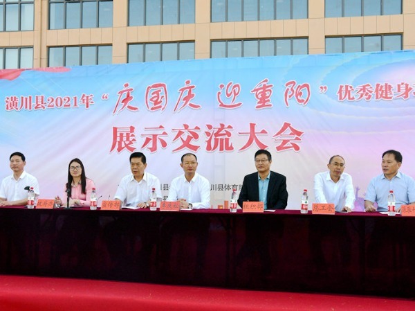 潢川网讯 为庆祝中华人民共和国72华诞、喜迎九九重阳节。9月30日上午,潢川县“庆国庆.迎重阳”优秀健身项目展示交流大会在县体育中心隆重举行。县委常委、宣传部长、政府副县长李庆松出席大会并宣布大会开幕,县委组织部、县委宣传部、政府办、总工会、县纪委监委派驻第十三组、体育服务中心等相关单位负责同志参会。