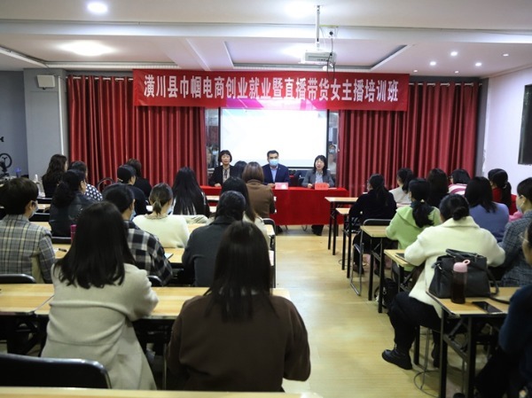 潢川网讯 为持续推进我县巩固拓展脱贫攻坚成果与乡村振兴的有效衔接,认真贯彻实施省“巧媳妇工程村播计划”,着力培养一批“村播巧媳妇”。10月15日上午,由县妇联举办的潢川县巾帼电商创业就业暨直播带货女主播培训班顺利开班。县妇联主席叶继红、副主席马建洁参加活动仪式,县妇联城乡发展部工作人员、部分村(社区)妇联干部、驻村第一书记以及各乡镇巧媳妇代表等60余人参加培训。