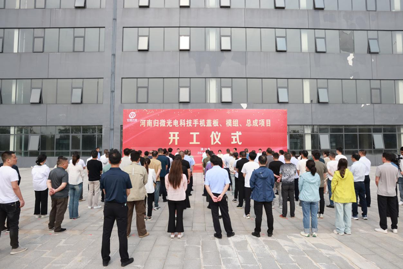 本网讯 5月15日,河南归微光电科技手机盖板、模组、总成项目开工仪式在新胜园区举行。市委常委、县委书记赵军伟,县领导余华、彭东、祁璟、沈律明、付法璟出席仪式。河南归微光电科技有限公司董事长吴奇隆、兴翼电子科技(东莞)股份有限公司董事长李胜、北京三得链环境科技有限公司董事长易晓阳等企业家受邀出席开工仪式。仪式由潢开区管委会主任江发刚主持。