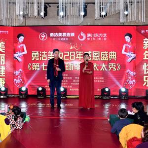 潢川网讯 2020年1月4日下午,潢川勇洁美妆28年感恩盛典暨第七届全球幸福太太秀在潢川宾馆一楼宴会厅隆重举行。县政协副主席、工商联主席李成强,县文明办、县文联、县妇联等领导,天福顺实业有限公司董事长王素华、维纳斯一站式婚礼会馆总经理陈静等嘉宾应邀出席。县同城商业联合会,县爱心协会,潢川勇洁美妆全体员工及近千名vip客户参加此次活动。