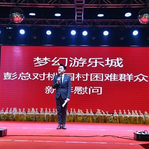 潢川网讯 1月22日下午,潢川梦幻游乐城举行桃园社区困难群众爱心慰问活动。活动中,潢川梦幻游乐城负责人彭利为桃园社区50位困难老人准备了大米、食用油等慰问品,向他们致以节日的问候。