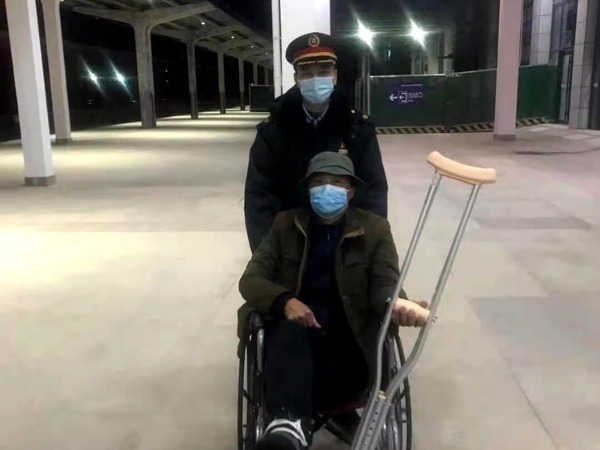 潢川网讯 2021年1月7日20时30分,值班站长刚在验证口巡视时,听见票房工作人员无线电台呼叫值班站长。说有一行动不便旅客,购买的是潢川到东莞东的K823次车票。值班站长急忙呼叫高全兵重点帮扶这名旅客,并送到重点旅客服务区,负责照顾。马上准备轮椅,一边询问旅客冷暖。