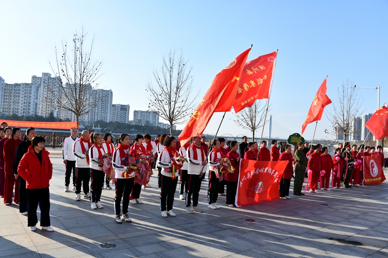 本网讯 春回大地,万象更新。2月12日上午,农历正月初三,由县体育卫生服务中心主办,县社会体育指导员协会承办的潢川县优秀社会体育指导员技能展示交流活动在滨河广场举行,旨在宣传健身理念,营造浓厚的节日氛围。