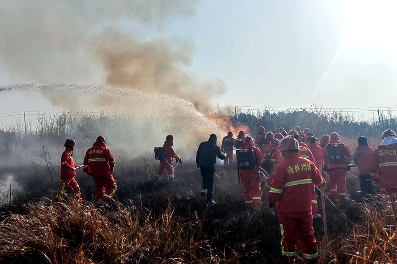 本网讯11月27日,信阳市委常委、县委书记赵军伟到白店乡参加潢川县2023“全市安全日”森林防灭火应急演练。演练现场模拟白店乡王店村护林员在方瓜楼村民组日常巡林时发现火情,及时进行初期人工扑打灭火,随
