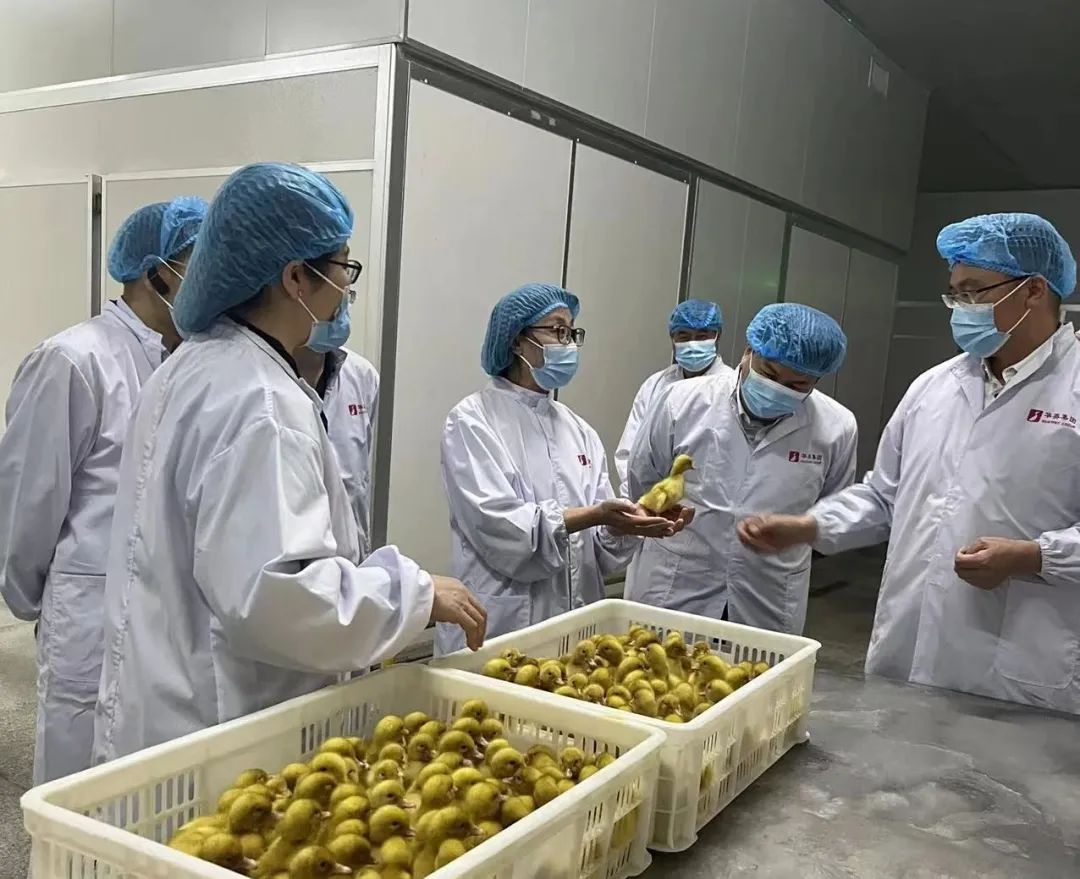 5月9日下午,河南省老促会副会长赵建才率领省老促会调研组一行深入华英公司参观调研,潢川县委副书记、县长余华,华英公司副总经理范俊岭、郭德国等领导陪同调研。赵建才一行参观了禽类加工六厂,并详细了解华英熟