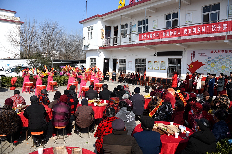 潢川网讯 为扎实做好新时代乡村文明实践活动,助力乡村振兴,弘扬中华民族传统美德,2月25日上午,潢川县隆古乡隆古村组织开展“爱高龄老人,促乡风文明”饺子宴活动。省委组织部派驻隆古村第一书记韩雪霏、黄国故城建设发展中心主任黄俊洁、隆古乡领导杨明杰,以及乡志愿者、村“四支队伍”志愿者和本村80岁以上老人们参与本次活动,以“贺新春,包饺子,看演出”的形式,为广大干群搭建一个平等、和谐、凝结爱心的平台,