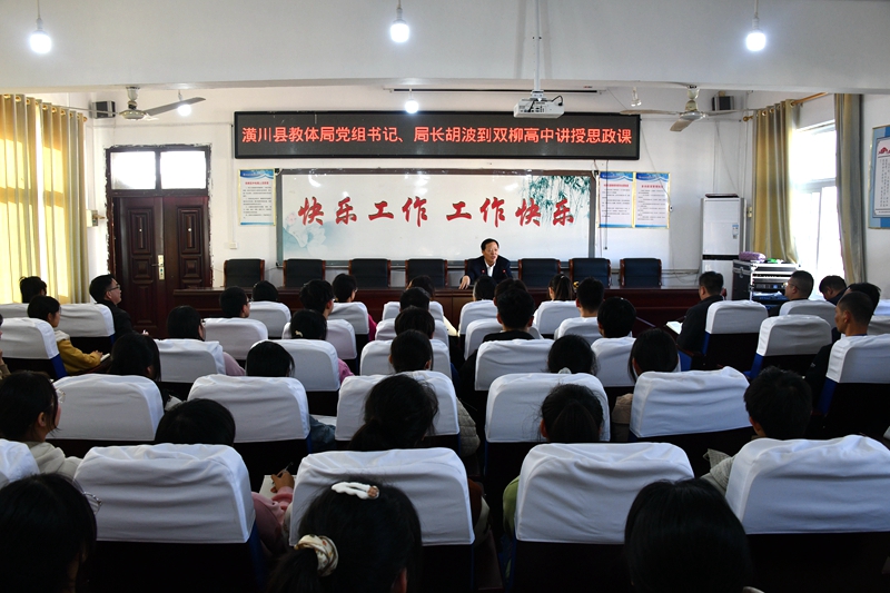 本网讯(瓮启兵 王刘影)为深入贯彻落实习近平新时代中国特色社会主义思想,充分发挥思政课在树立道德、塑造人格方面的作用,强化社会主义核心价值观的教育,深化爱国主义情感。11月21日下午,潢川县教体局党组书记、局长胡波深入双柳高中,为师生代表上了一节深入浅出的思政课。局党风室相关领导,学校班子成员一同聆听。
