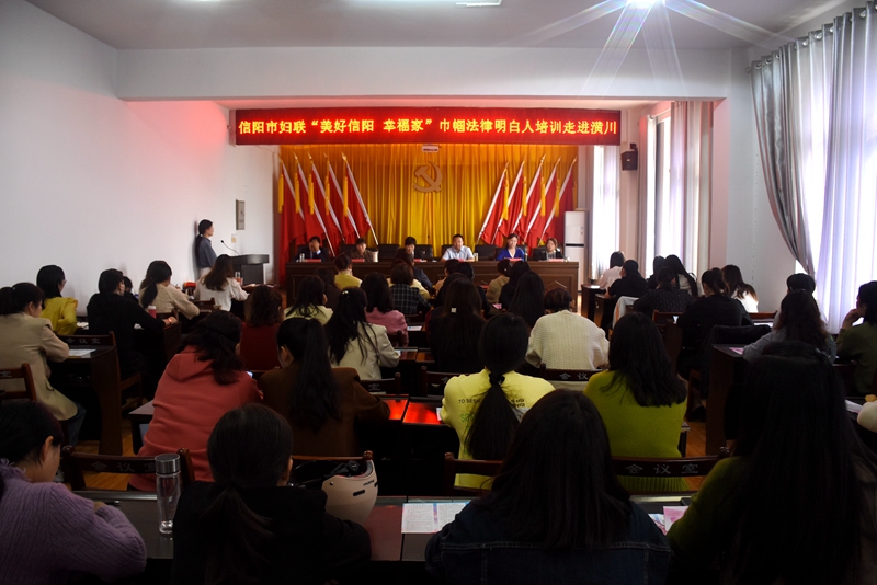 本网讯 为深入学习贯彻党的二十大精神和习近平法治思想,大力推进“八五”普法规划实施,切实发挥妇联组织在“法律明白人”培养工作中的作用,提升妇女干部法治素养,充分发挥妇女干部基层社会治理优势。10月25日上午,信阳市“美好信阳 幸福家”巾帼法律明白人培训走进潢川。此次培训特邀信阳市婚姻家庭纠纷调解员、婚姻家庭法学研究会常务理事、老城律师事务所主任梅虹授课,县妇联党组书记胡煜昊,党组成员、副主席胡定霞