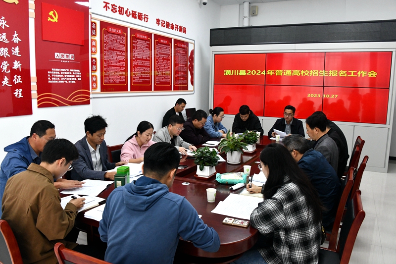 本网讯 2023年10月27日,潢川县召开2024年普通高校招生报名工作会议在县教育考试中心召开,中心副主任罗金旗、吴玉志、陈琴等出席会议,全县各高中相关负责人参加了此次会议。会议由吴玉志主持。