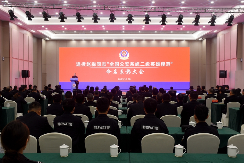 本网讯 在全党深入开展第二批主题教育、全国公安机关学习宣传贯彻习近平总书记重要回信精神之际,10月20日上午,追授赵淼同志“全国公安系统二级英雄模范”命名表彰大会在信阳潢川举行。