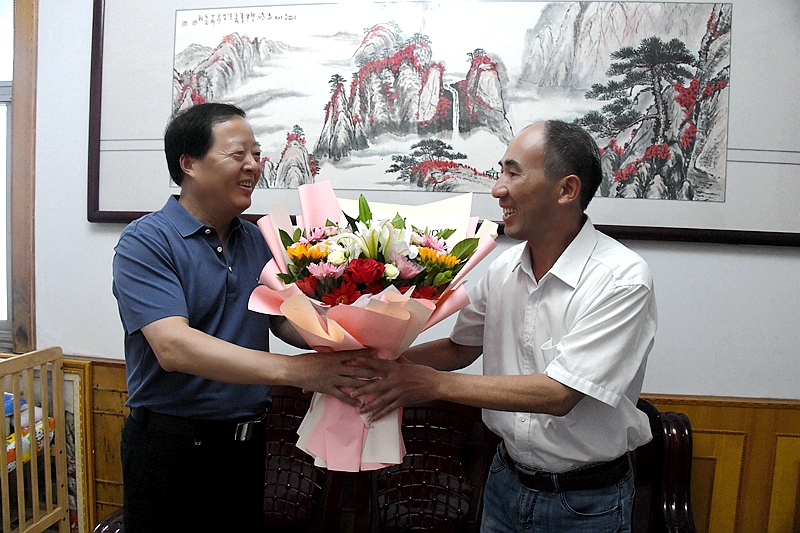 本网讯 9月9日上午,在第三十九个教师节来临之际,县教体局党组书记、局长胡波,局办公室主任詹德璞一行走访慰问了今年退职的校长及优秀教师代表,为他们送上鲜花和节日慰问品,感谢他们为全县教育事业发展作出的积极贡献。