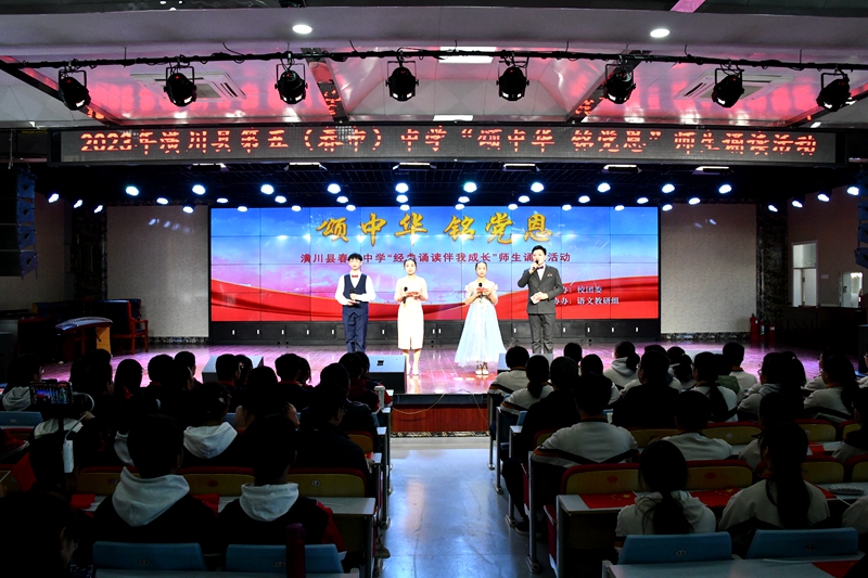 本网讯(杨进锋)11月24日下午,潢川县春申中学举办了一场别开生面的师生诵读活动。活动的主题为“颂中华,铭党恩”,旨在通过诵读经典篇目,强化未成年人的思想道德建设,增强学生们的爱党、爱国、热爱社会主义的思想,以实现立德树人的根本任务。学校全体班子成员、各年级师生代表参加活动。
