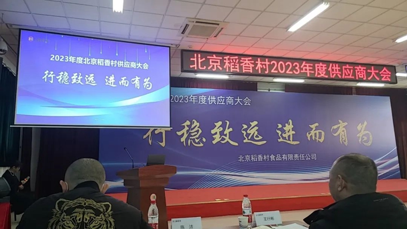 12月20日,北京稻香村2023年度供应商大会在北京稻香村总部召开,130多家供应商参会,华英农业作为北京稻香村合作伙伴应邀参会。会上华英农业被评为诚信合作供应商,并获得了“诚信合作奖”奖牌。会后,北京稻香村和华英农业签订了2024年度采供合同。