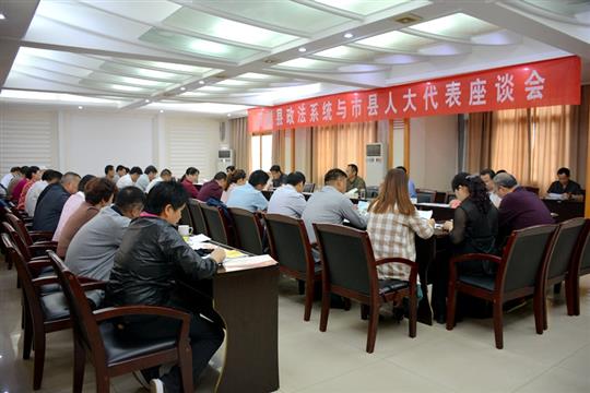 潢川县政法系统与市县人大代表举行座谈会 座谈会由县人大副主任邱召健主持 县法院院长郭长林讲话