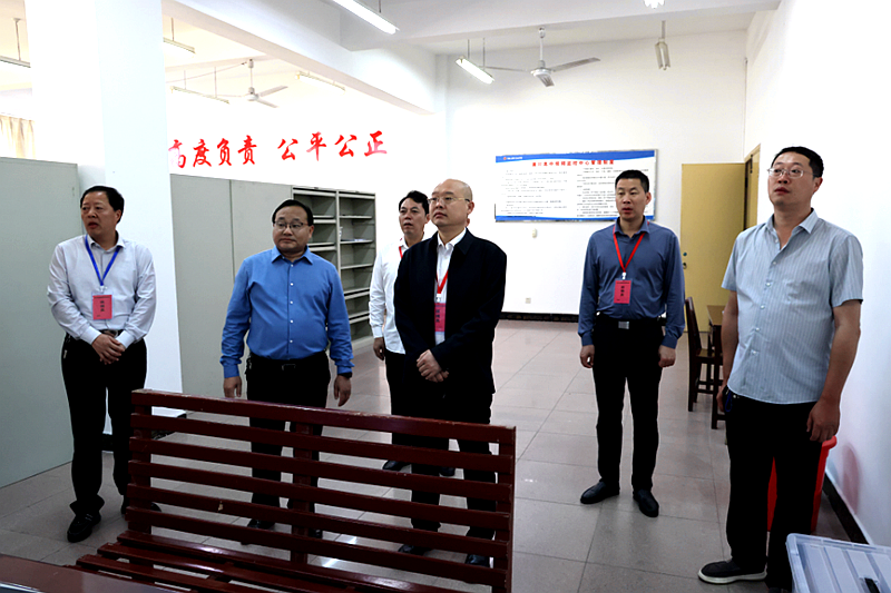 本网讯 2023年高考即将到来,考场试卷的安全保密至关重要。为了确保试卷的安全性和保密性,6月5日下午,市高考巡视组成员刘泽志、张焕云、胡道学以及浉河区来潢监考总领队李晓俊和副总领队李云燕一行,在县教体局党组书记、局长胡波,党组成员、副局长、招办主任吴昱的陪同下,对潢川县高考试卷保密室进行了巡视检查。
