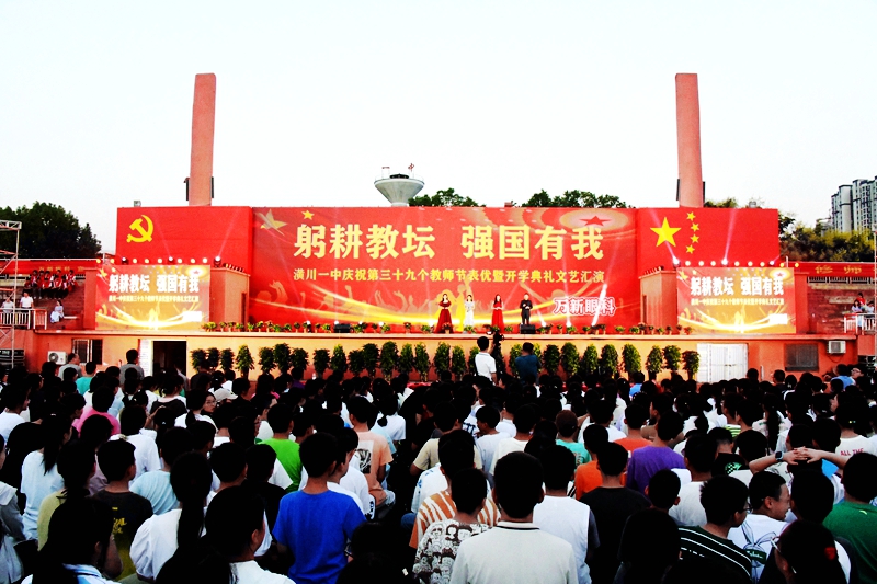 本网讯(胡圣龙罗志勇左勇)9月8日晚,潢川一中体育场内,人头攒动,灯火辉煌。一场盛大的庆祝活动——庆祝第39个教师节表优暨开学典礼文艺汇演在这里隆重举行。学校党委全体成员及初、高中部近万名师生参加。舞