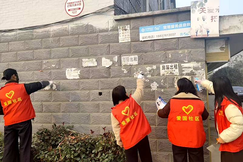 本网讯 为持续巩固社区环境整治成果,有效遏制“牛皮癣”广告反弹回潮现象,切实提升辖区居住环境品质,12月17日上午,潢川县老城街道爱国社区组织开展“牛皮癣”专项清理行动。本次行动精准聚焦反弹重点区域,通过科学部署、分类施策,全面打响环境“清爽保卫战”,取得显著成效。