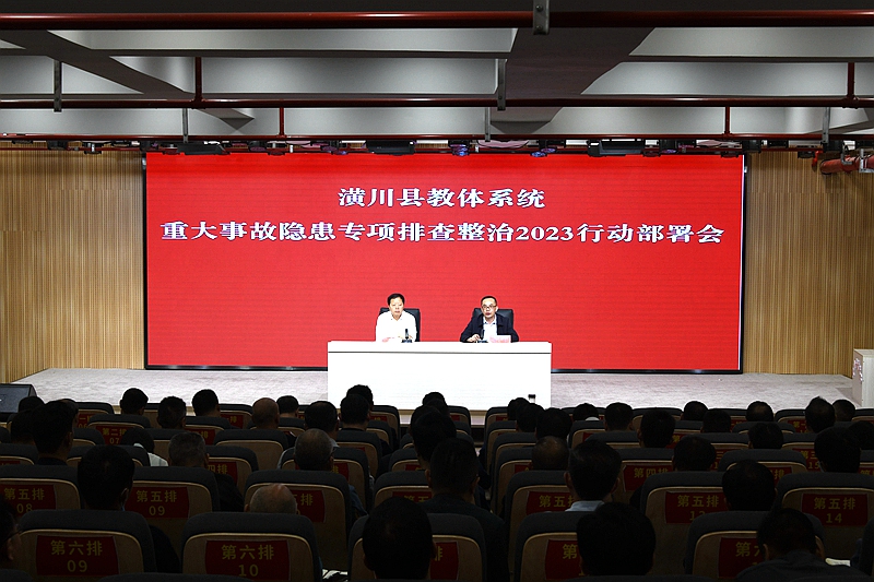 本网讯(陶千)5月22日下午,在收听收看全市教体系统重大事故隐患专项排查整治2023行动动员部署会后,潢川县教体局立即召开会议,落实市局会议精神,对全县教体系统重大事故隐患排查整治工作进行安排部署。局党组书记、局长胡波主持会议并讲话,局党组成员李豹就警校共建、防溺亡、消防、食品安全、校舍安全、校车安全等工作作了具体安排。