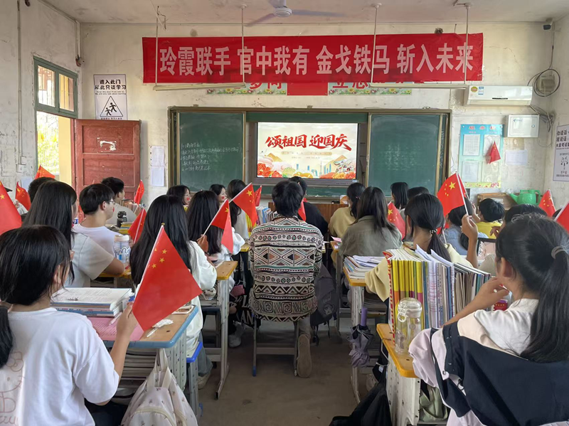 本网讯(张霞)金秋时节,举国欢庆。值此中华人民共和国成立76周年即将到来之际,潢川县官渡中学的校园早已被浓浓的国庆氛围包裹。从教学楼前迎风招展的红旗到同学们脸上鲜艳的国旗贴纸,从精心设计的主题课件到集会时嘹亮的歌声,处处洋溢着“我爱你,中国”的深情告白。