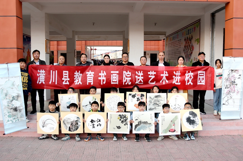 本网讯 为弘扬和传承中国优秀传统文化,提高学生的艺术修养和审美能力,丰富校园文化生活,让孩子们身临其境地感受书画魅力。2024年11月6日,潢川县教育书画院院长杨锦辉亲自带队,一行八位老师走进付店中心校,开展“送艺术进校园”活动。