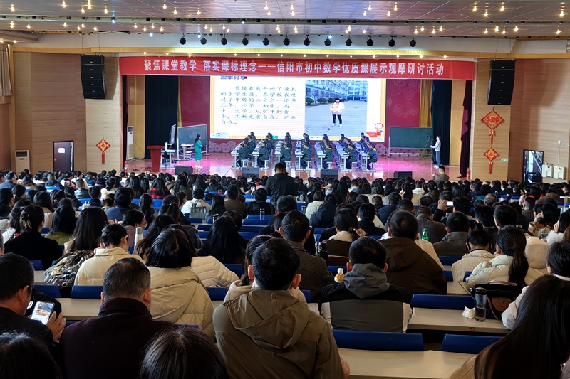 本网讯 为进一步推动全市初中数学教学质量的提升,搭建教师学习交流的广阔平台,11月23日,由市教育教学研究室主办,潢川县教育研究中心、黄冈实验学校承办的信阳市初中数学优质课展示观摩活动在潢川县黄冈实验学校举办。市教育教学研究室、潢川县教体局、潢川县教育研究中心、潢川县黄冈实验学校相关领导,市教育教学研究室数学中心组成员,各县区初中数学教研员、中心组成员,全市各初中数学教师共800余人参加活动。