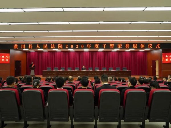 潢川网讯 浓浓感恩意,依依惜别情。11月10日下午,潢川法院举行了2020年度干警荣誉退休仪式,欢送刘建国、马克勤、陈国霞、李长宏四名同志光荣退休。院党组书记、院长陈刚出席仪式并致辞,全体院领导、全院干警参加仪式。
