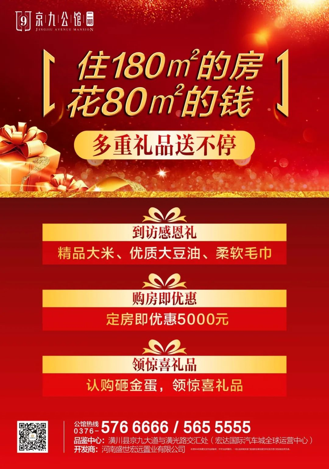 在楼盘如云的潢川,能够做到一期爆卖,二期持续热销,靠的就是京九公馆的高性价比卖点;买80㎡送100㎡,折合单价3000多,让客户花80㎡的钱就能住180㎡的墅质美宅,要知道这个房价,只相当于潢川2012的房价,可想而知,京九公馆的高性价比是实打实的突出!