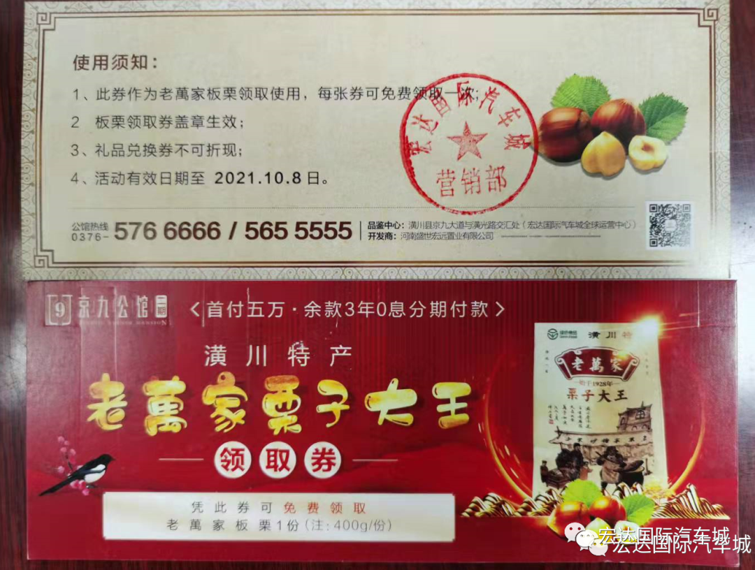 券张领取地点:潢川县京九大道与潢光路交汇处(宏达国际汽车城)