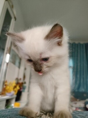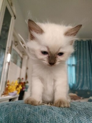 本人家中有两只布偶小猫,已经满月会吃饭,自己能到猫砂盆拉屎!现500元每只出售